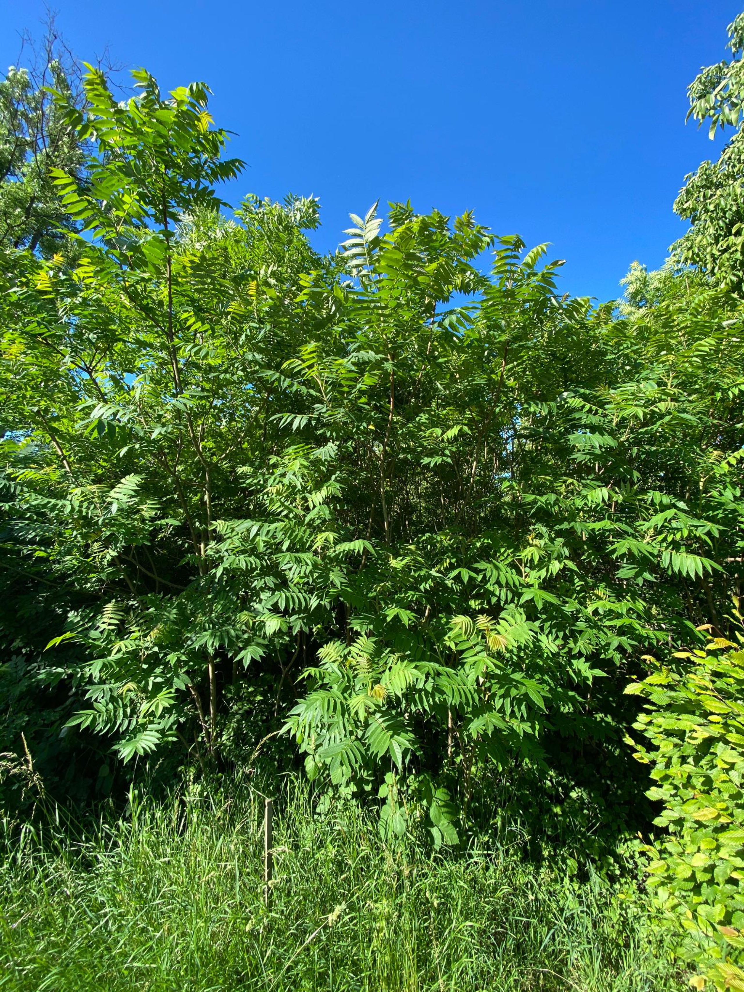 Diese nordamerikanische Pflanze kann in der Natur durch dichte Bestände einheimische Arten verdrängen. Der Essigbaum befindet sich deshalb auch auf der schwarzen Liste. In Aarberg sieht man den Essigbaum entlang dem Hagneckkanal.